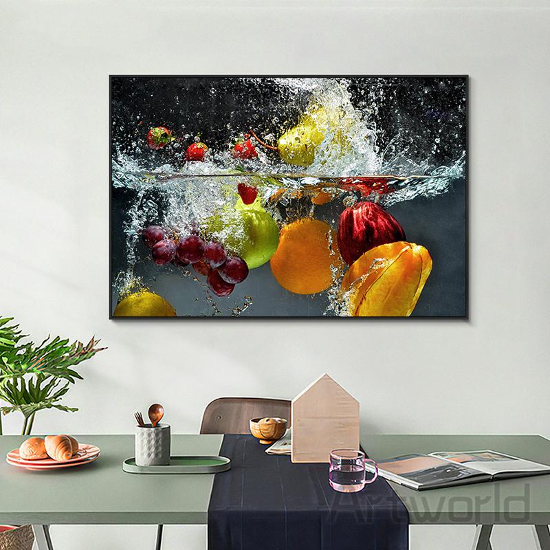Свежие фрукты и овощи в воде, холст, картина на стене, художественные постеры и принты, настенные фотографии для кухни, домашний декор