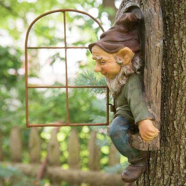 Эльф из двери/окна, обниматель деревьев, непослушный садовый гном, статуя, декор дерева