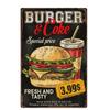 Металлическая вывеска для гамбургера, винтажная жестяная вывеска для ресторана быстрого питания, настенный декор для кухни, кафе, закусочной, бара, бургера, металлические вывески 20x30c