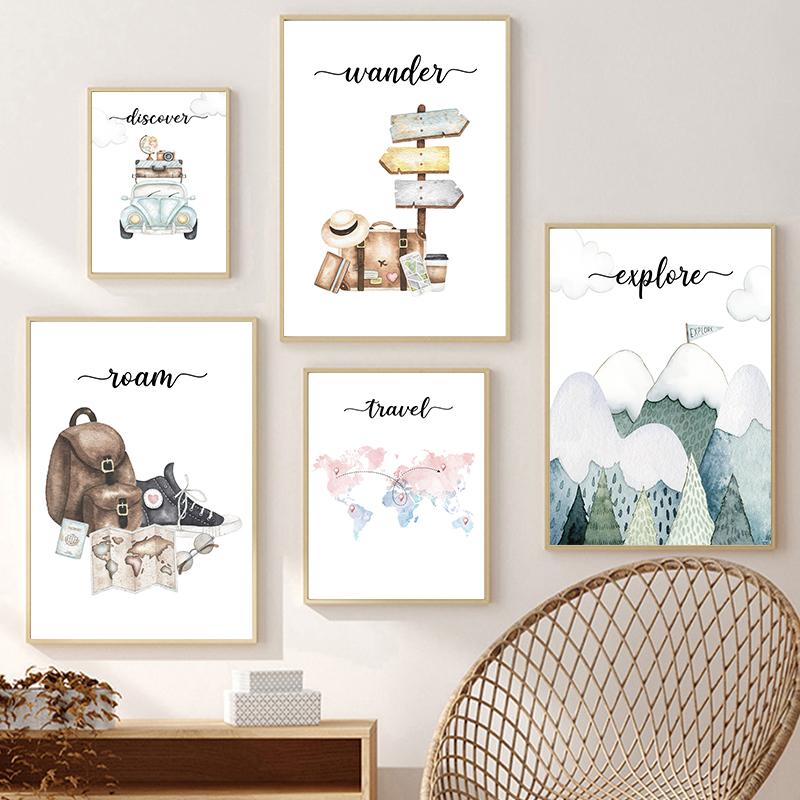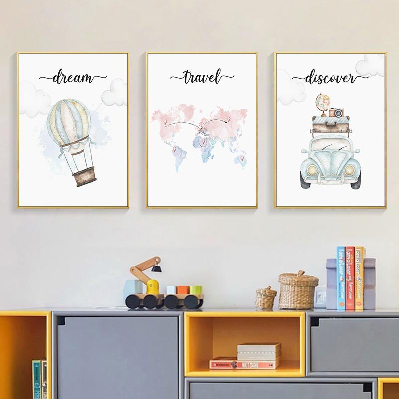 Путешествие по всему миру мультфильм детский постер детский образ жизни холст живопись настенная живопись с принтом картина детская комната домашний декор