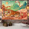 Большой гобелен в китайском стиле в стиле тигра, настенный гобелен с геометрическим рисунком, гобелен в стиле хиппи, домашний декор, эстетическое украшение