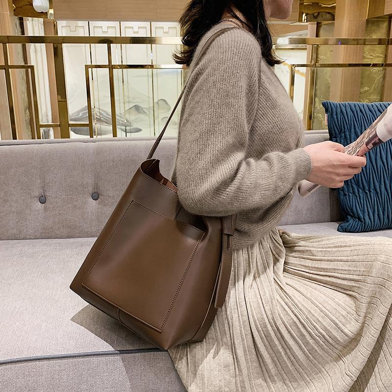 IELGY Текстурная женская модная сумка-ведро в корейском стиле, большая вместимость