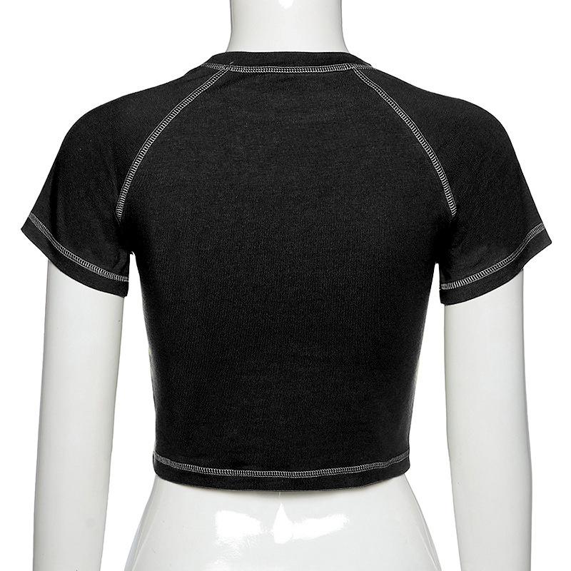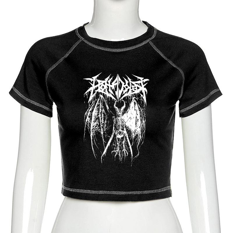 Женская футболка, укороченный топ, Harajuku, ретро, корейский, черный, демон, панк, готический, аниме, одежда с принтом, тонкая аниме
