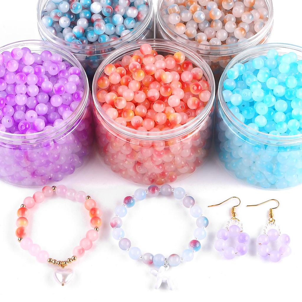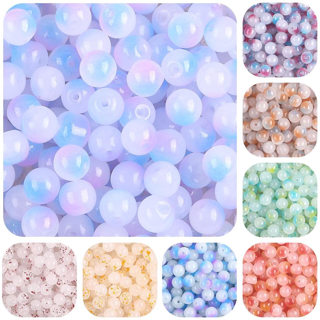 50 шт. 8 мм двухцветные стеклянные бусины желейного цвета, гладкие свободные бусины для изготовления ювелирных украшений, DIY палочка для волос, браслет, ожерелье, серьги
