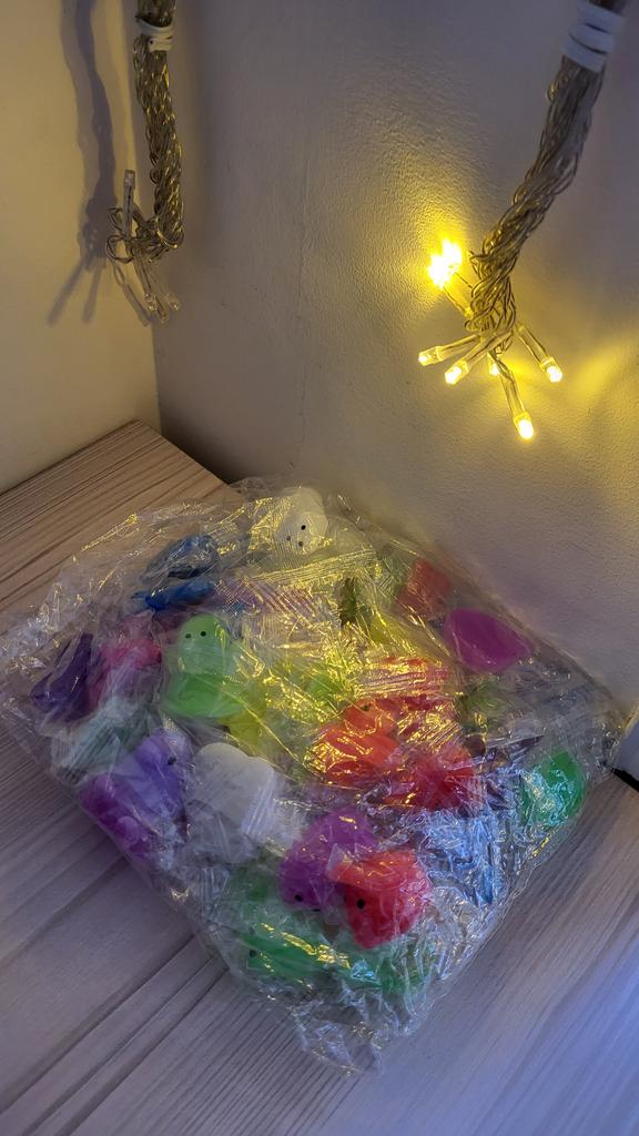 Это слайм антистресс как я считаю для своей цены не очень хороший поэтому сами думайте хотите вы такой приобрести или нет у меня он нежно розовый с добавками (присыпка)и (кубики)