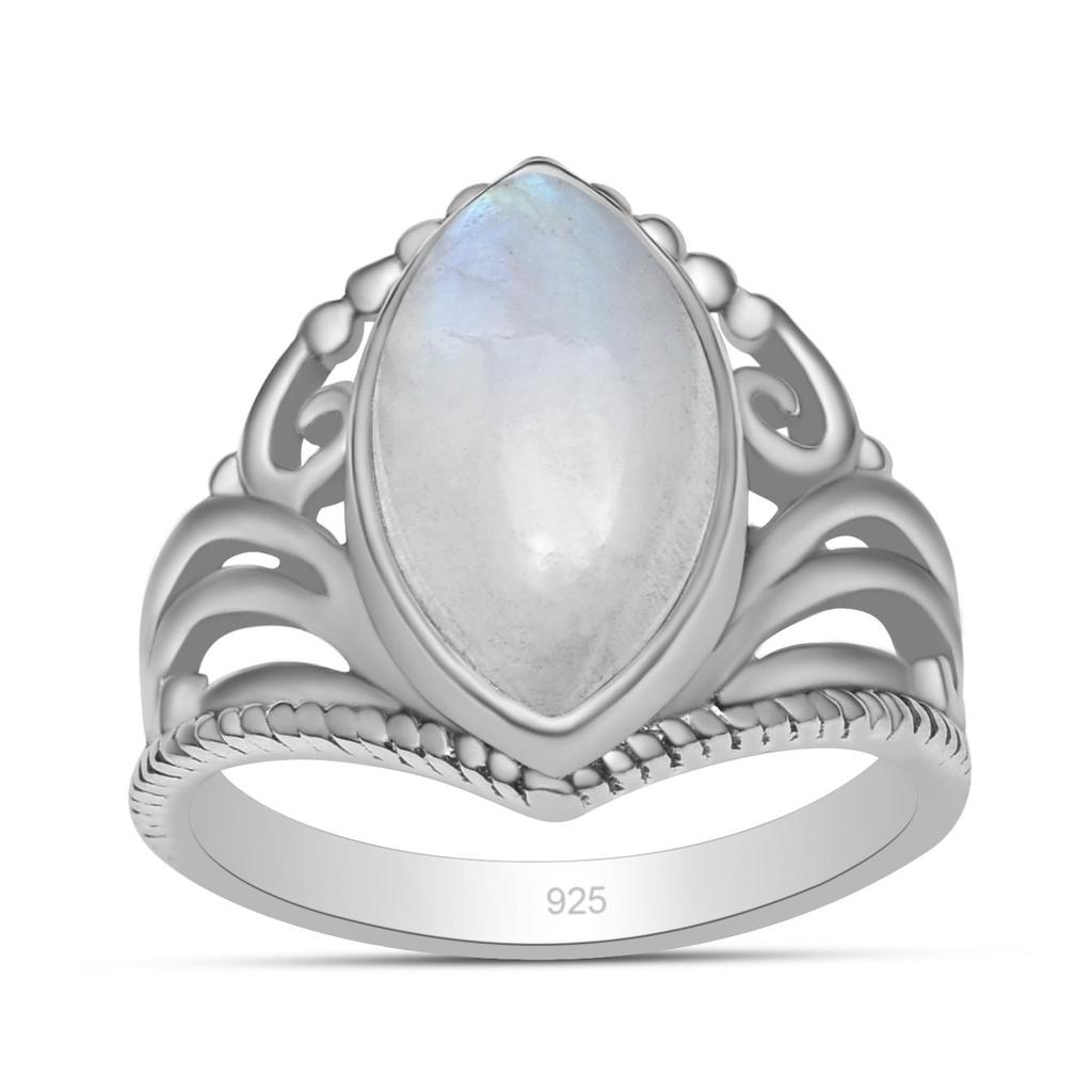 Кольцо с натуральным голубым огнем и лунным камнем, стерлинговое серебро 925 пробы, маркиза в форме шеврона, коронные кольца для женщин и девочек