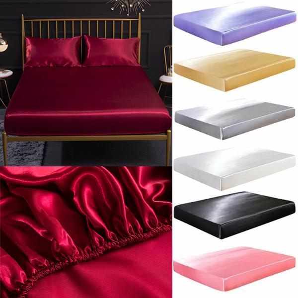 Атласная шелковая простыня высокого класса, сплошной цвет, наматрасник, эластичная лента, простыня, простыня, королевский размер, покрывало