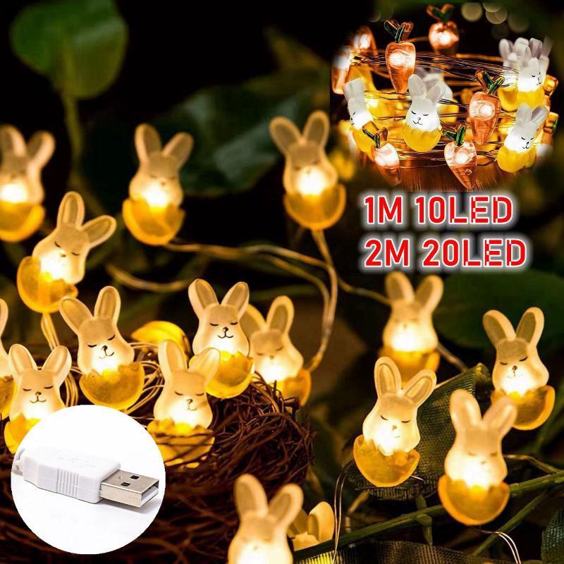 Пасхальные светодиодные гирлянды в виде кролика, моркови, кролика, сказочный свет, подарки, пасхальные вечерние украшения для дома, товары HMM
