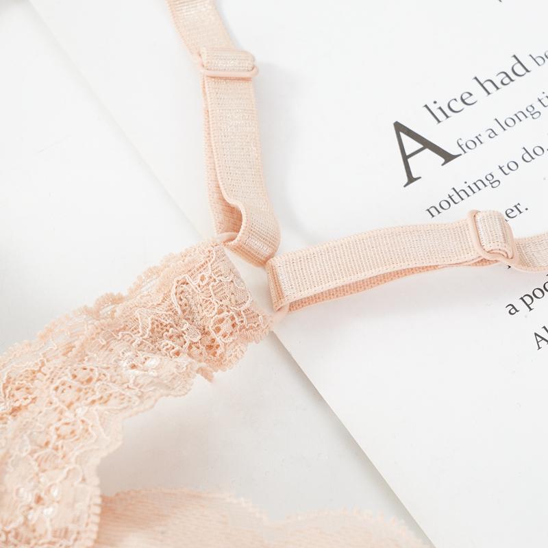 Сексуальный женский комплект кружевного нижнего белья, красивый комплект нижнего белья с поясом на спине, грудь без стальных колец, бюстгальтер пуш-ап с низкой талией, женское нижнее белье с Т-образной спинкой