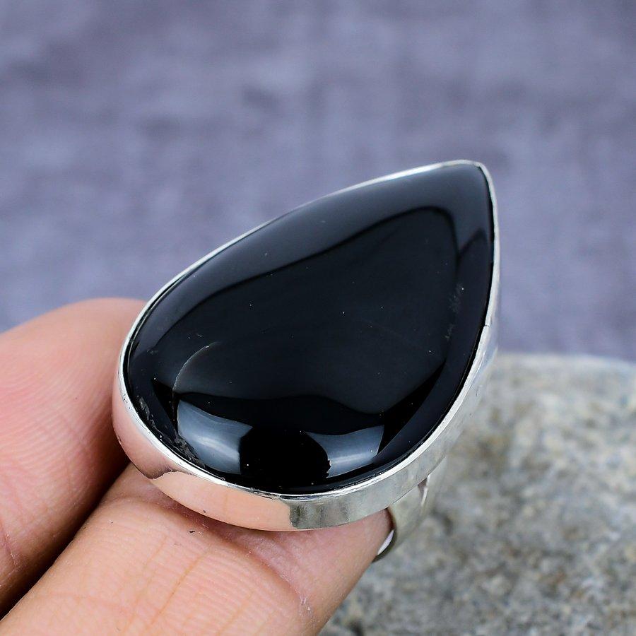 Черный обсидиановый драгоценный камень ручной работы 925 пробы Серебряное кольцо Ювелирный подарок для матери