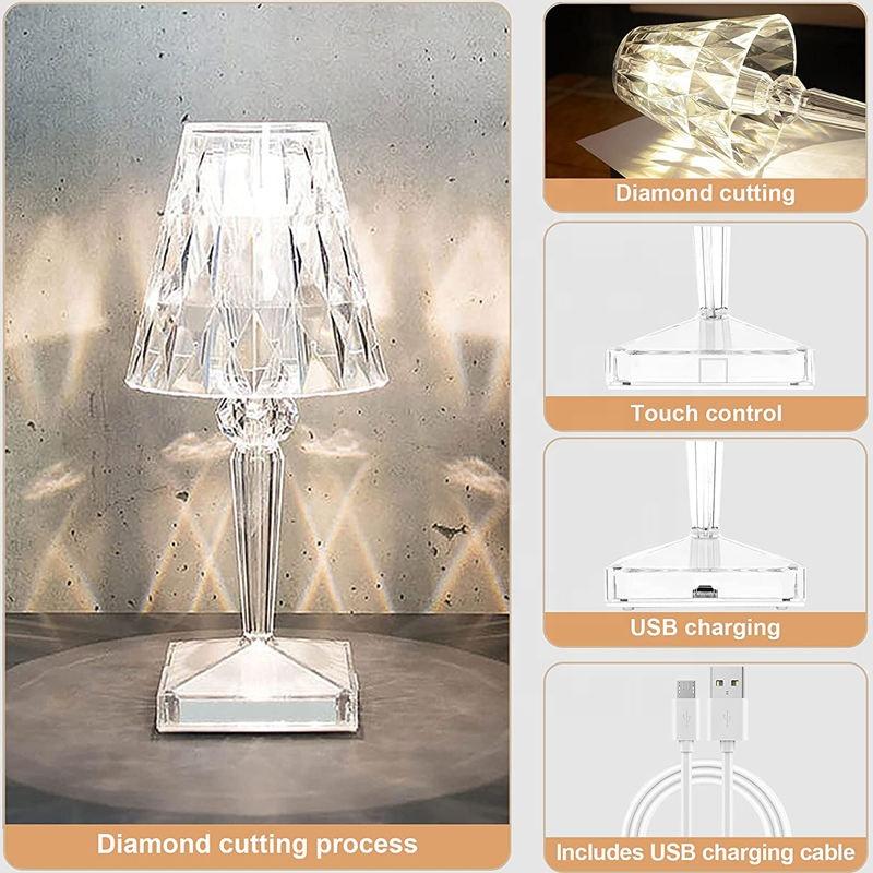 Перезаряжаемая беспроводная 16-цветная хрустальная роскошная дизайнерская настольная лампа Crystal для гостиницы