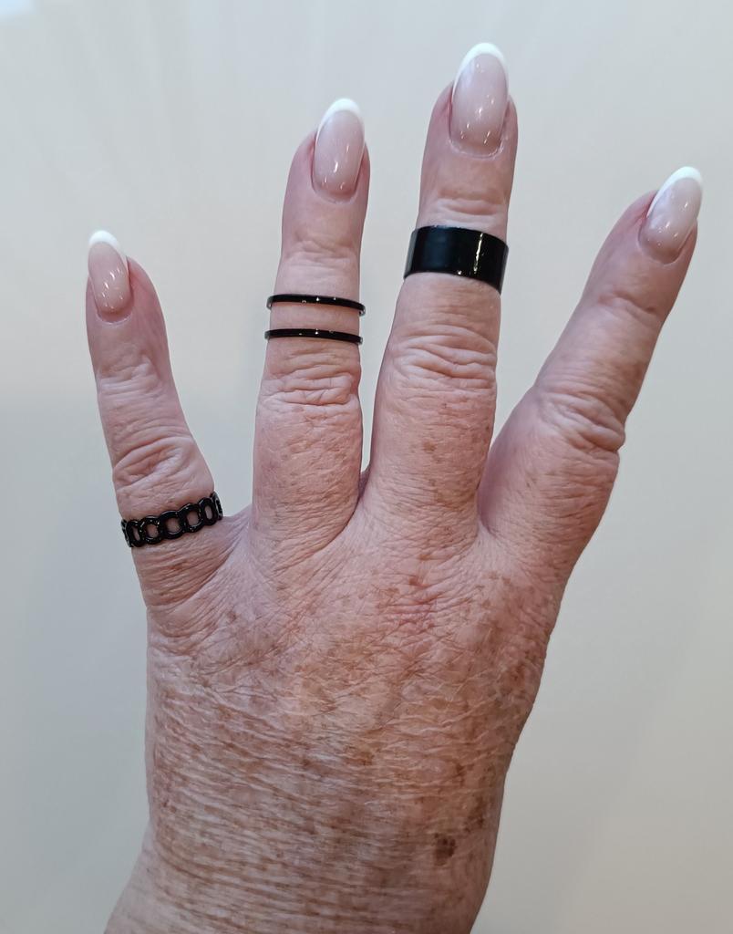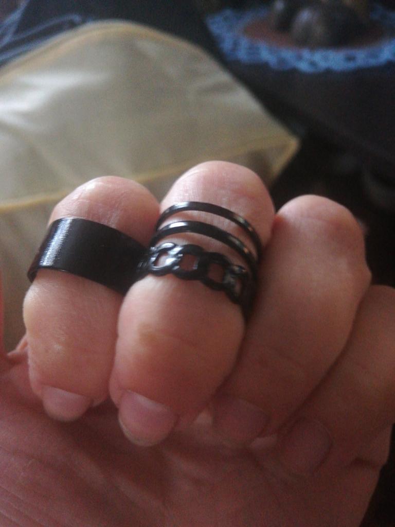 Колечки пришли хорошо упакованные, вовремя. Размер свободный, поэтому подойдут на любые пальцы. Но совсем уж недолговечные: поносила дня два - и уже стала слазить черная краска. За такую цену не планировала передать их по наследству, конечно, но на пару месяцев надеялась поносить))