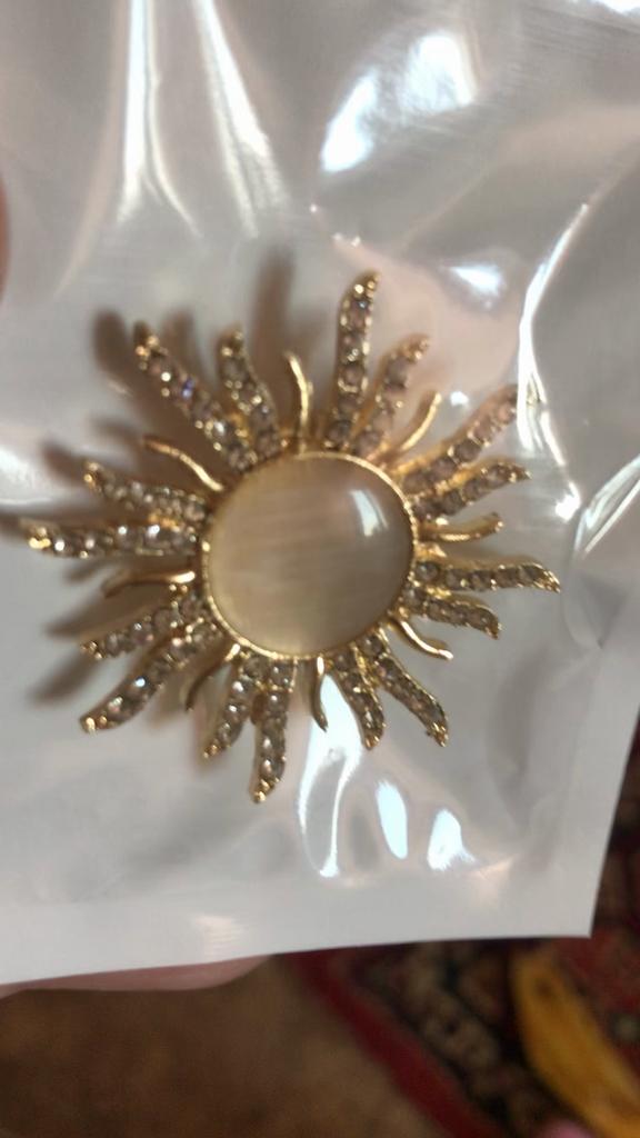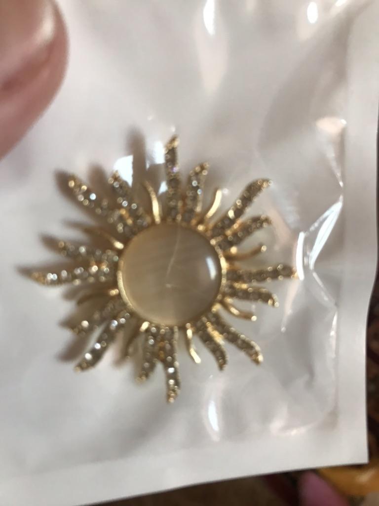 Чудесное солнышко значок, настроение поднимает, качество отличное - прочная застежка, все камушки на месте и хорошо приклеены, блестят просто волшебно. Рекомендую!