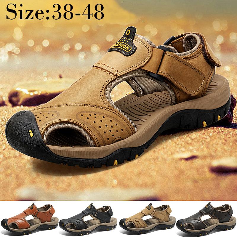 Мужские сандалии Кожаные мужские пляжные римские сандалии Мужская повседневная обувь Шлепанцы Мужская спортивная пляжная обувь