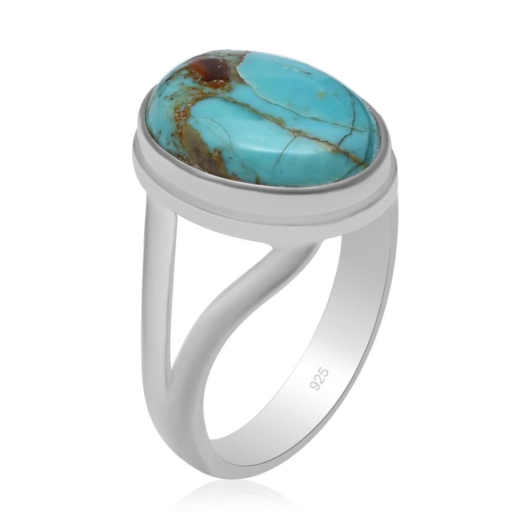 Натуральный 10X14 мм овальный бирюзовый драгоценный камень стерлингового серебра 925 пробы с разделенным хвостовиком кольца для женщин и девочек