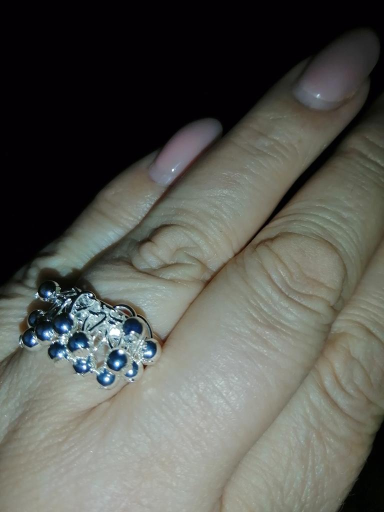 Кольцо порадовало, очень оригинальное, для лета самое то. Смотрится не избито. Обращает на себя внимание. Спасибо продавцу и Джуму. Фото не передает всей красоты цвета, кажется, что с камешками, на самом деле подвесочки из металла.