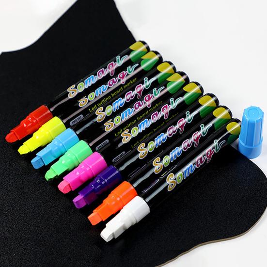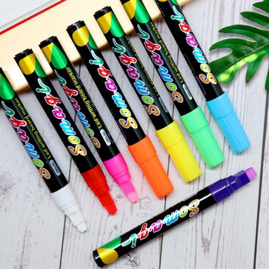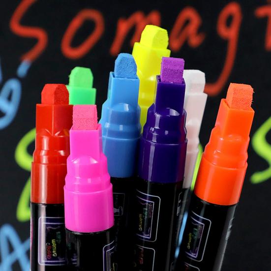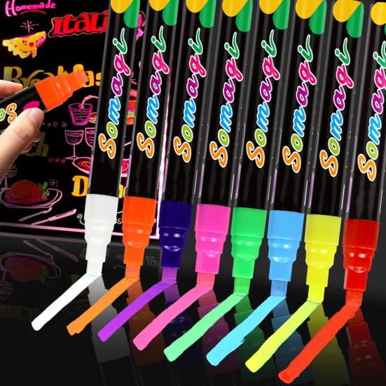 8 шт., жидкий меловой маркер, стираемый квадратный наконечник, разноцветный светодиодный маркер для доски, флуоресцентная неоновая ручка, магазинные принадлежности