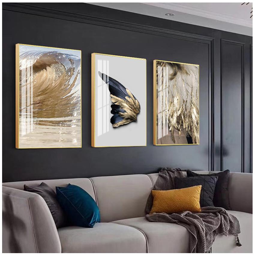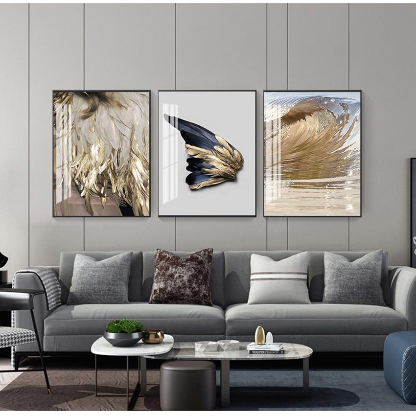 Картина на холсте, настенная картина, фон для дивана, американский современный декор для гостиной, золотое перо, абстрактные крылья ангела