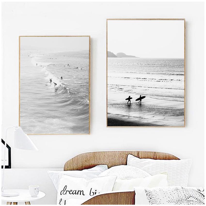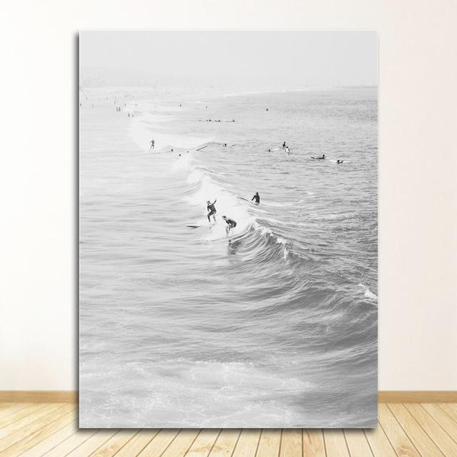 Картина серфинг прибрежный декор для гостиной плакат о серфинге Калифорния настенное искусство черно-белый океан принт пляжный холст