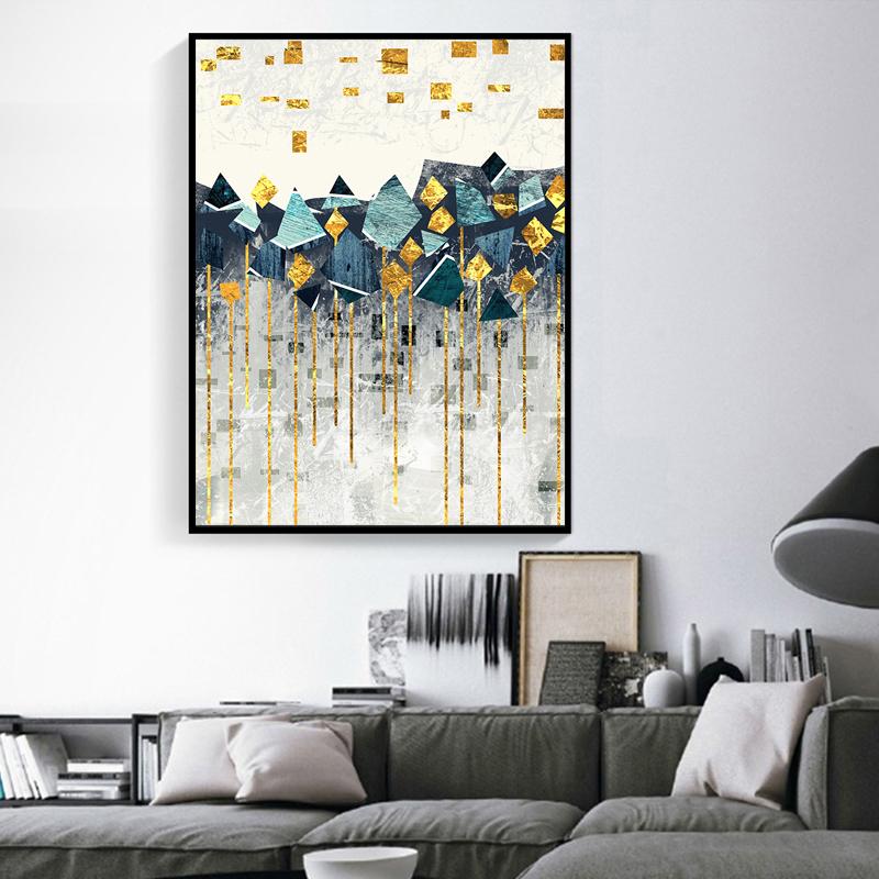 Скандинавский абстрактный геометрический горный пейзаж, настенная живопись на холсте, Золотое солнце, художественный постер с принтом, настенная картина для гостиной