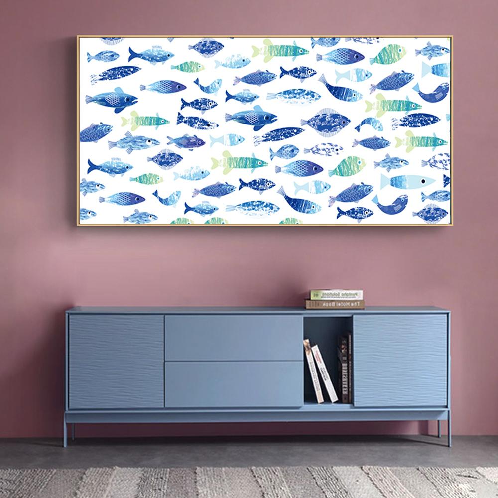 Абстрактная картина с синей рыбой, холст, живопись, настенные художественные постеры для гостиной, скандинавская картина, современный шикарный домашний декор