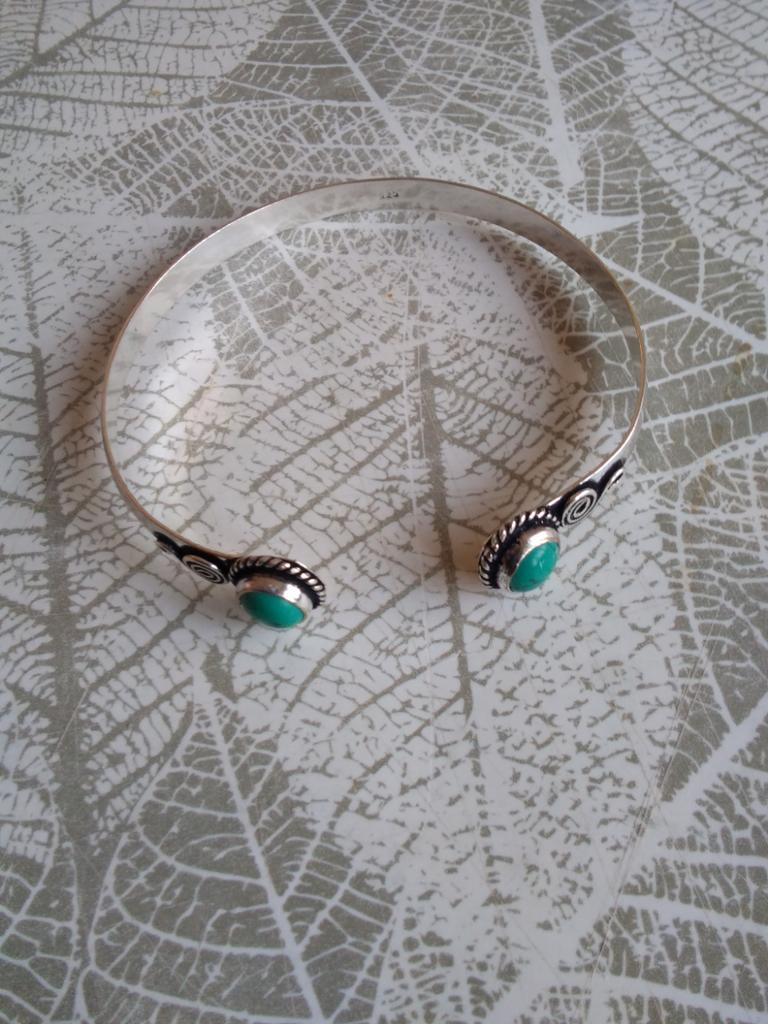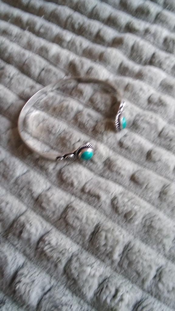 Браслет с бирюзоаым камнем,под серебро. Браслет взяла к кольцу и серьгам,получился комплект. Пробы нет Прислали все в коробочке,спасибо.