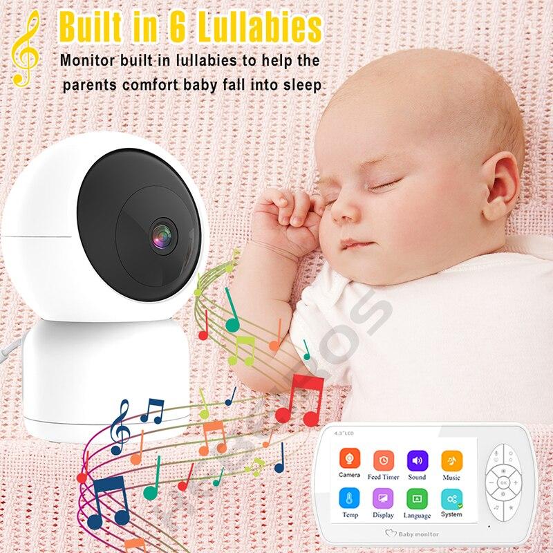 Радионяня с музыкой, голосовая связь, ночное видение, 360 PTZ-камера, батарея, няня, Wi-Fi, камера 4,3 дюйма, видео 1080PAA