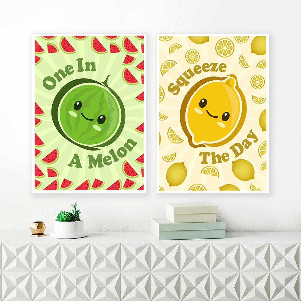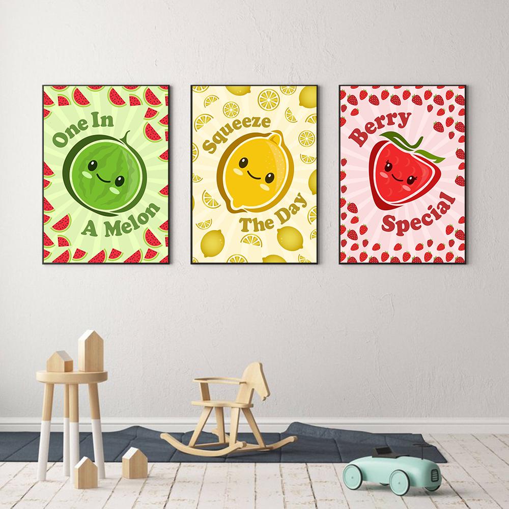 Скандинавские мультяшные постеры с фруктами, клубникой, лимоном, арбузом и принтами, современное настенное искусство, холст, живопись, кухонный домашний декор, фотографии