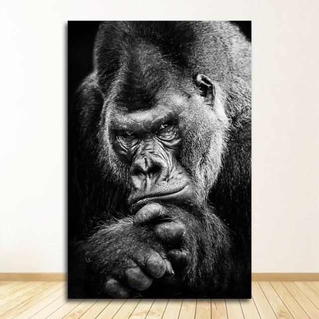 Скандинавская настенная картина для украшения гостиной, постер с изображением обезьяны, черно-белый холст с принтом, абстрактное произведение искусства, художественная живопись — купить товар онлайн с бесплатной доставкой по всему миру!