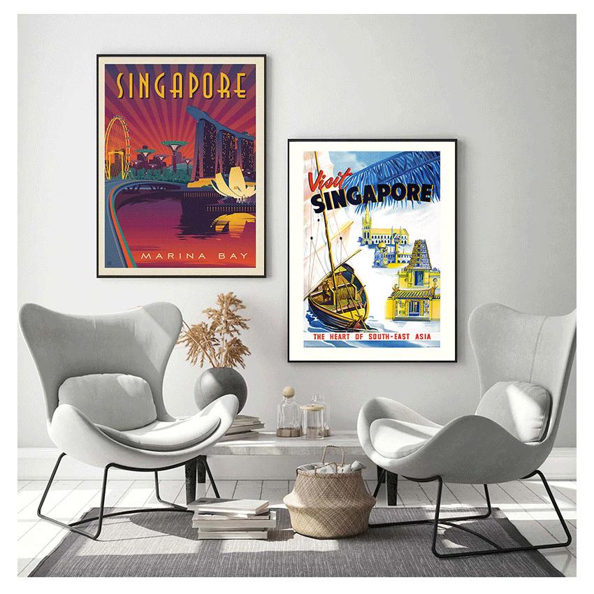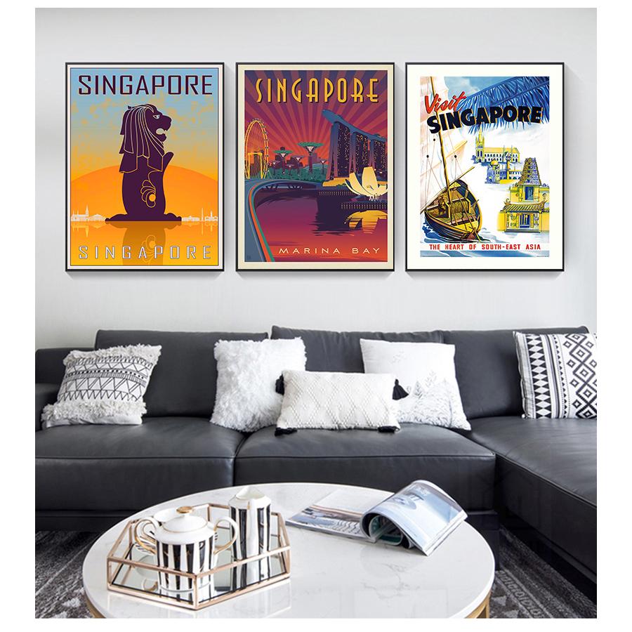 Ретро путешествия классические картины на холсте крафт-постеры настенные наклейки домашний декор семейный подарок Юго-Восточная Азия карта Сингапура винтажная