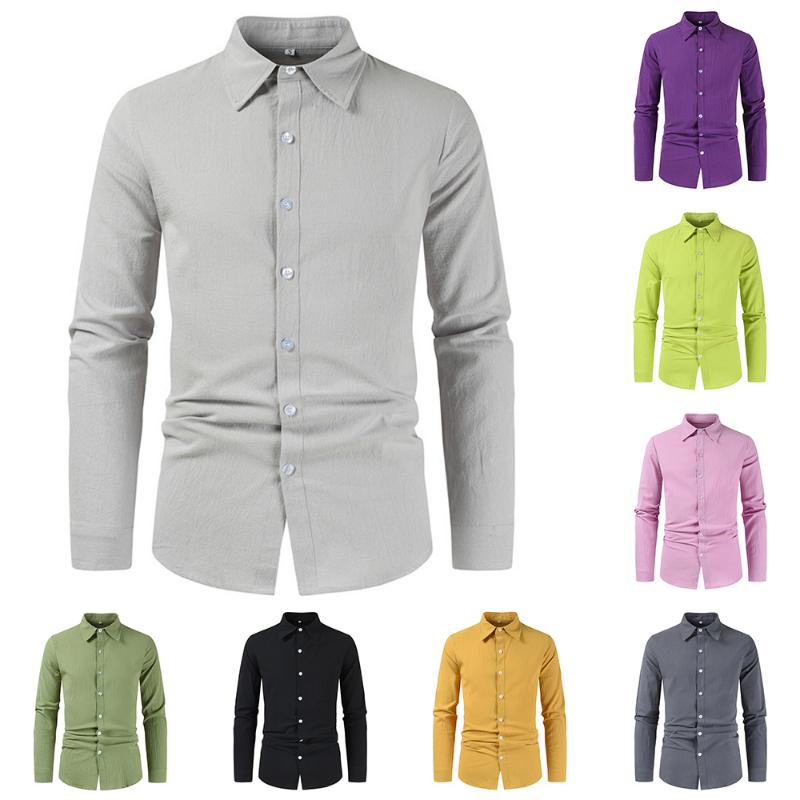 Мужская хлопково-льняная классическая рубашка с длинным рукавом, повседневные однотонные мешковатые топы на пуговицах — купить товар онлайн с бесплатной доставкой по всему миру!