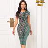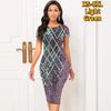 Тонкое платье длиной до колена с коротким рукавом, модное женское платье Midi 3D в форме ромба с ромбовидным принтом
