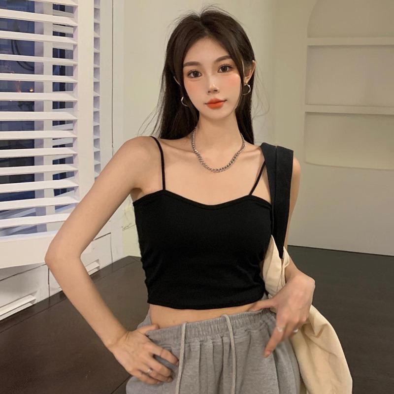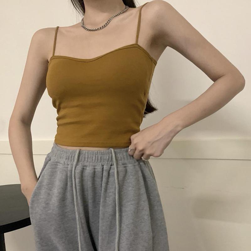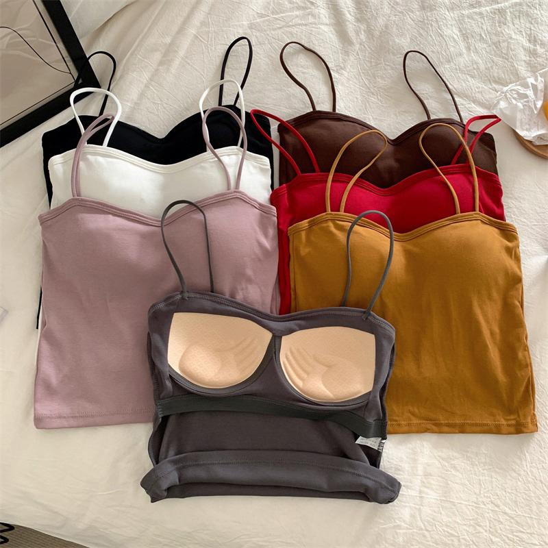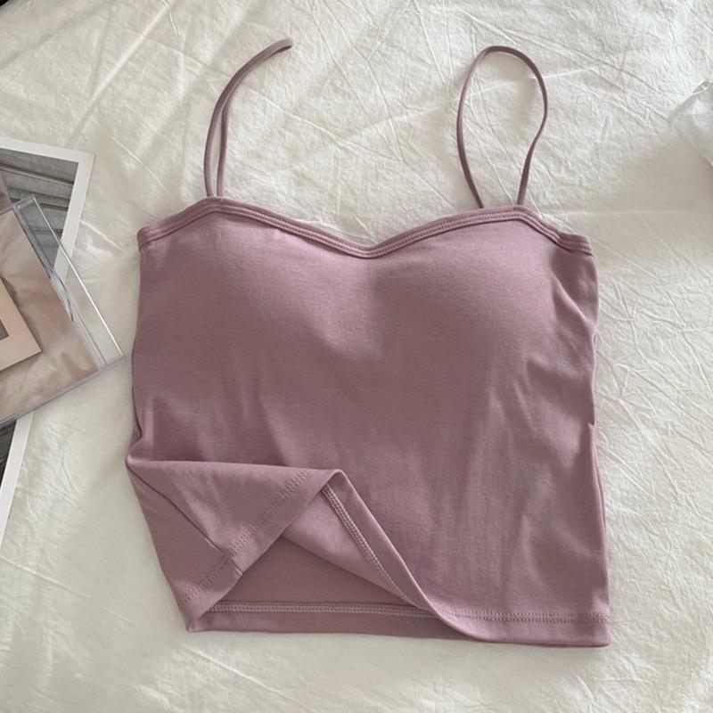 Женский однотонный милый топ на бретельках с накладкой на грудь, утягивающий спортивный костюм для йоги, повседневный универсальный укороченный топ со встроенным BR