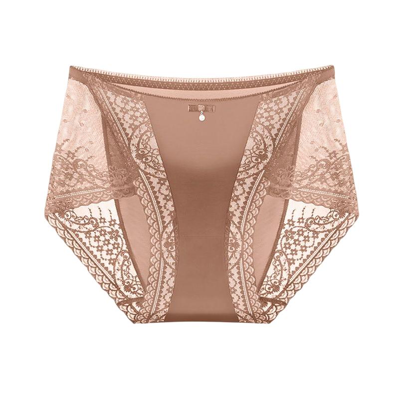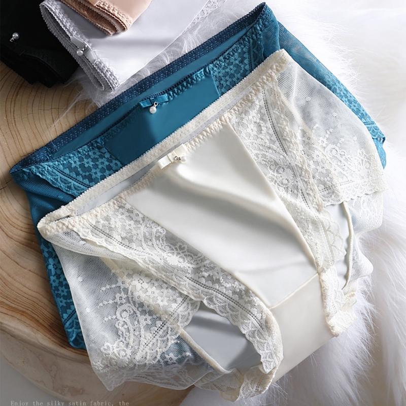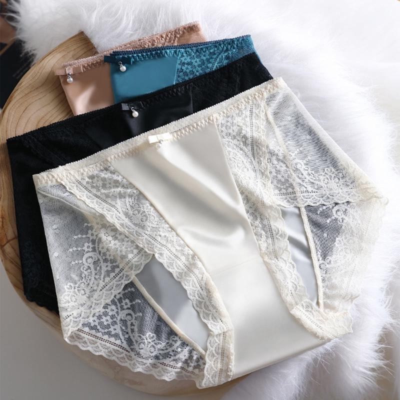 Женские летние тонкие шелковые трусы со средней посадкой, однотонные кружевные лоскутные полупрозрачные нижнее белье, мягкие гладкие трусики