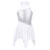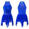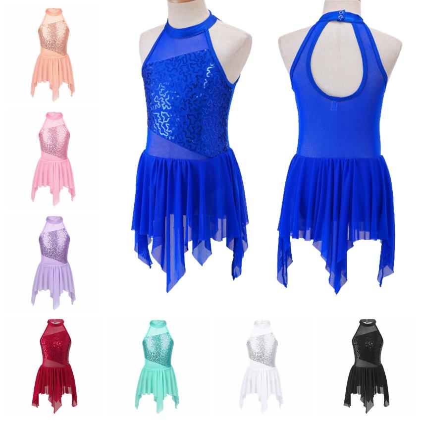 Платье-купальник без рукавов с вырезом сзади и блестками, современный лирический балет, джаз, латинский танец, юбка с неровным подолом — купить товар онлайн с бесплатной доставкой по всему миру!