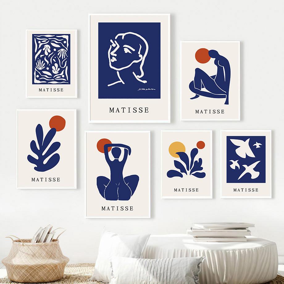 Синий Матисс абстрактный голубь коралловый девушка солнце стены книги по искусству холст картины плакаты на скандинавскую тему и принты настенные панно для декора гостиной