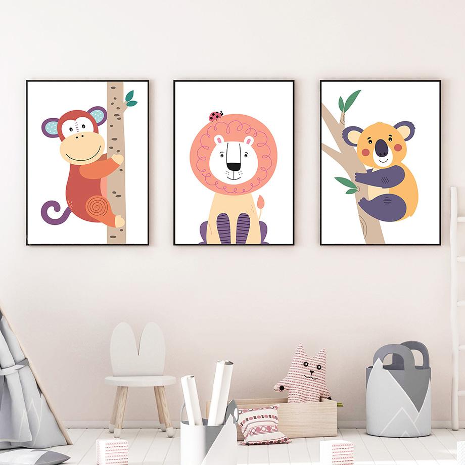 Лев, слон, жираф, тукан, коала, тигр, фламинго, настенные художественные постеры, принты, скандинавская картина на холсте, фотографии животных, декор для детской комнаты