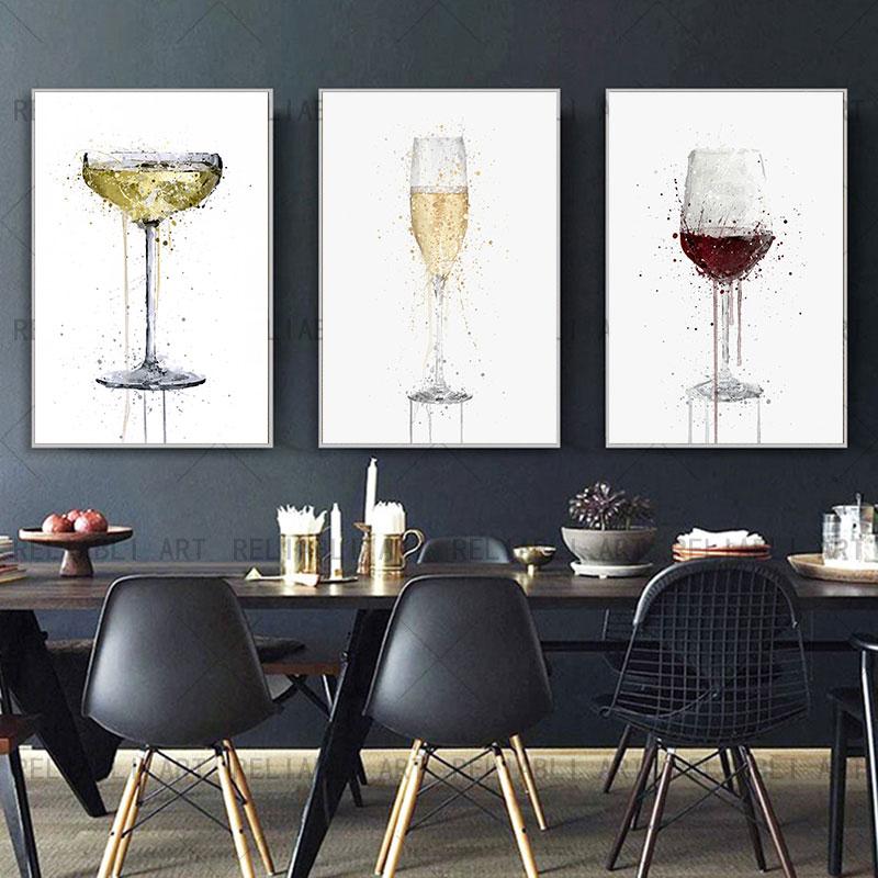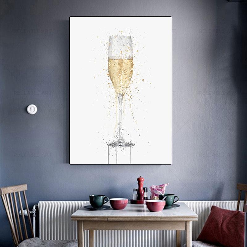 Современный абстрактный бокал для шампанского, холст, картина, настенная живопись, бокалы для вина, постеры и принты для гостиной, кухни, украшения Quadro