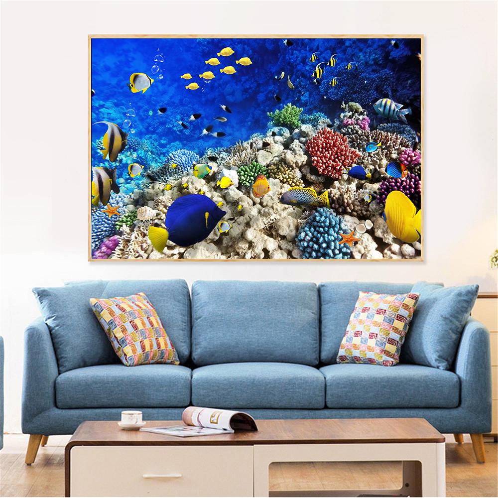 Золотисто-желтая рыба, морские животные, картина маслом, Декор для гостиной, холст, подводный пейзаж, картина, плакат, настенная художественная картина
