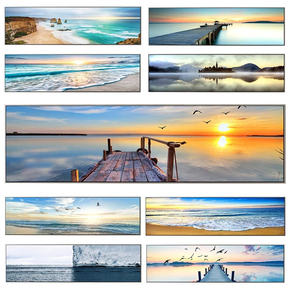 Природный пейзаж, холст, картина, пляж, закат, мост, постеры и принты, настенные художественные картины для гостиной, домашний декор, без рамки