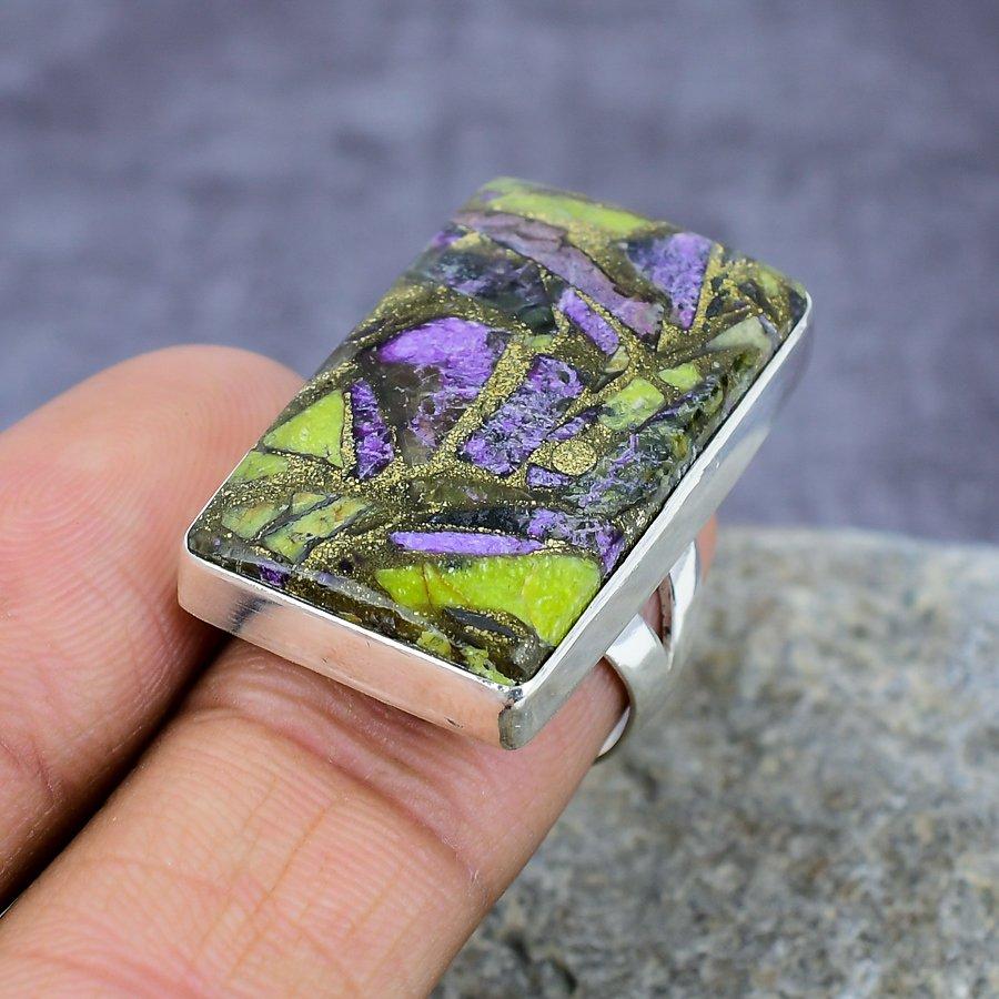 Ювелирные изделия из стерлингового серебра 925 пробы с драгоценным камнем из меди и стихтита ручной работы Все размеры