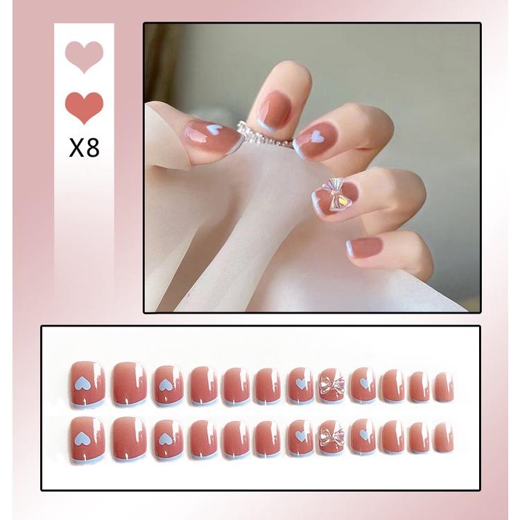 Накладные ногти Короткие художественные кончики для ногтей Нажмите на накладные ногти с дизайном Полное покрытие Искусственные розовые носимые прозрачные кончики Нажмите на ногти Накладные ногти короткие