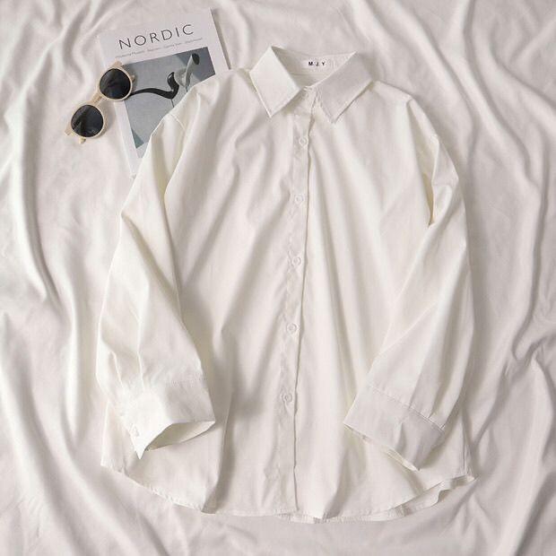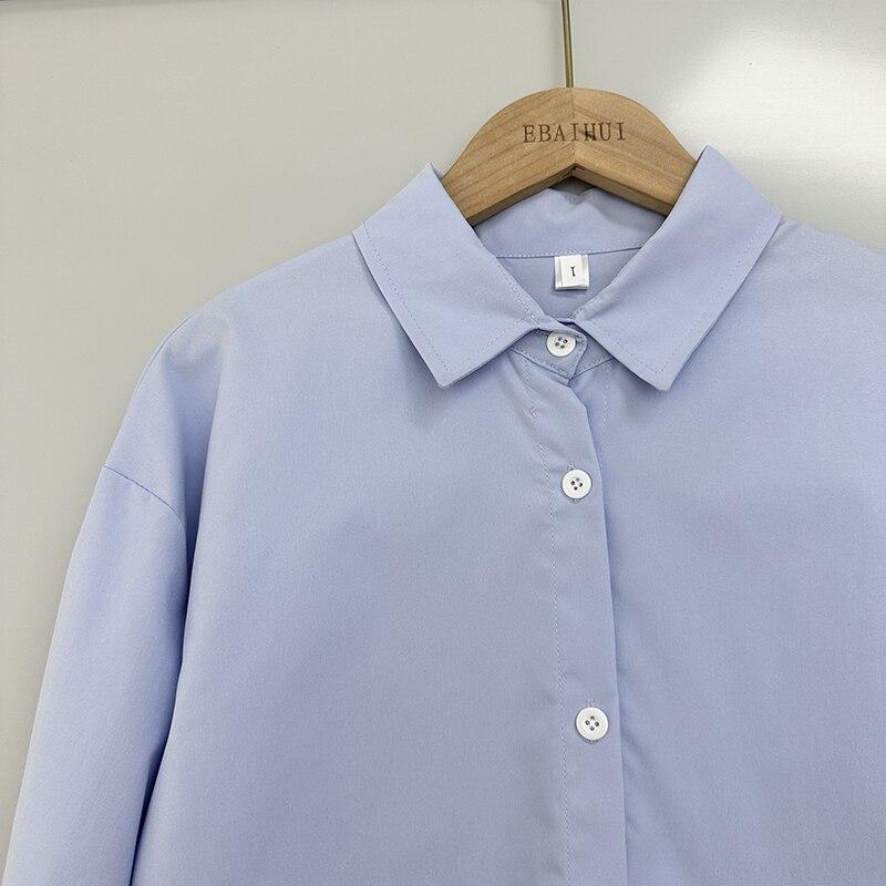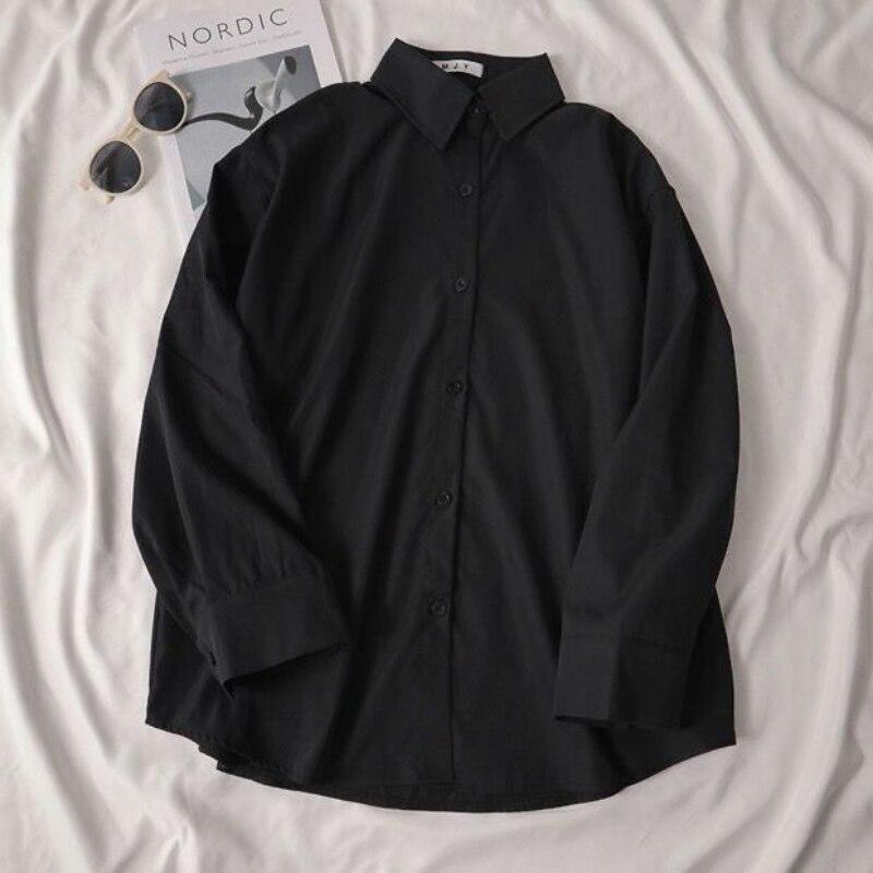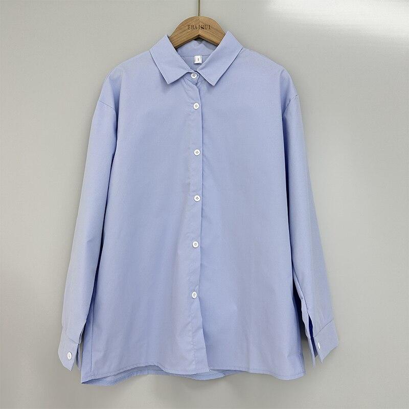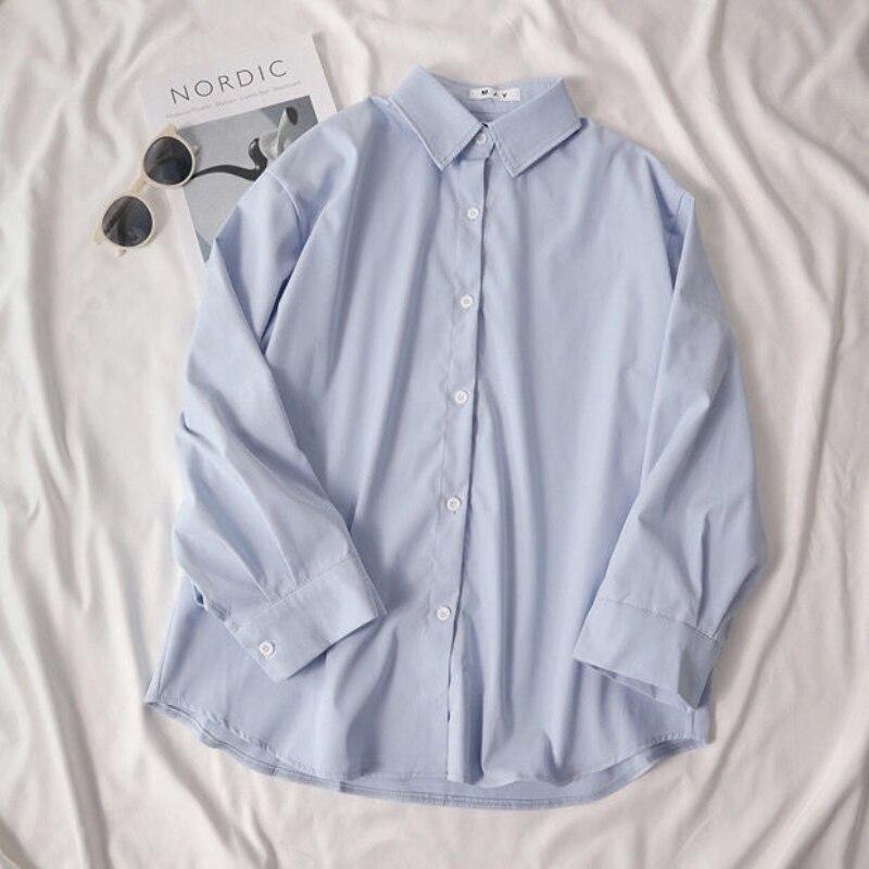 Женские корейские шикарные рубашки с длинным рукавом, белые, синие, черные повседневные блузки с отложным воротником, блузки в консервативном стиле, винтажные топы