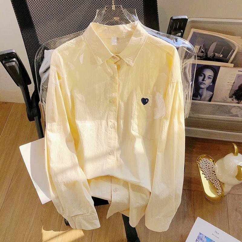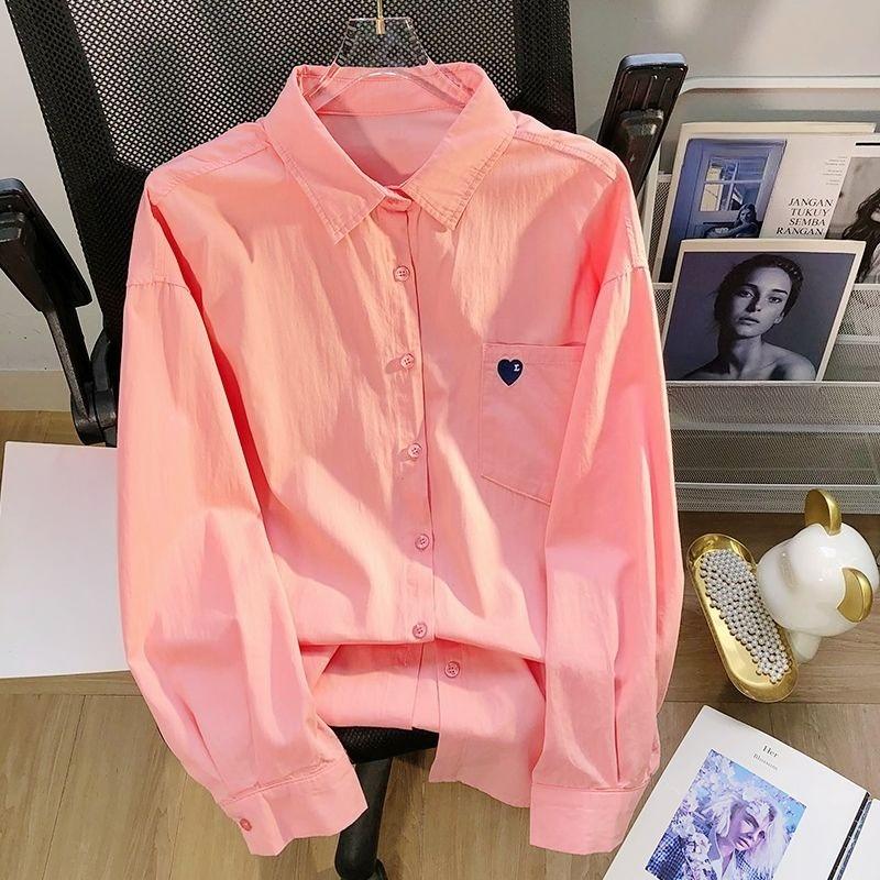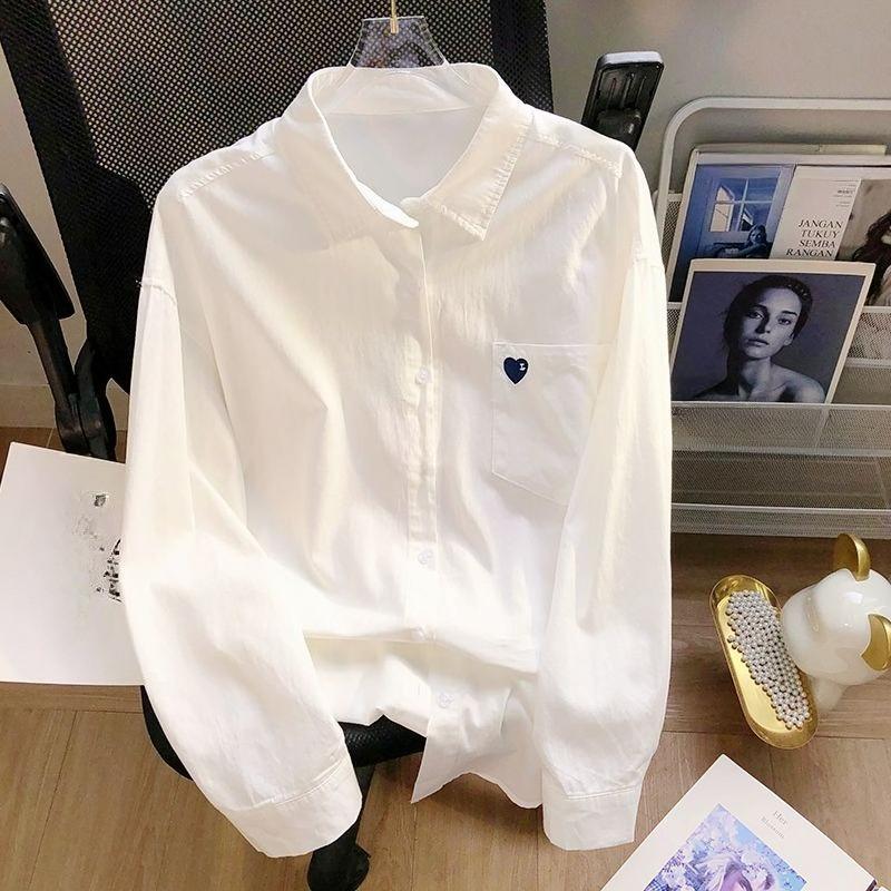 Женские топы, свободная блузка для женщин, вышитое сердце, повседневная корейская модная женская рубашка с длинными рукавами, шикарные рубашки