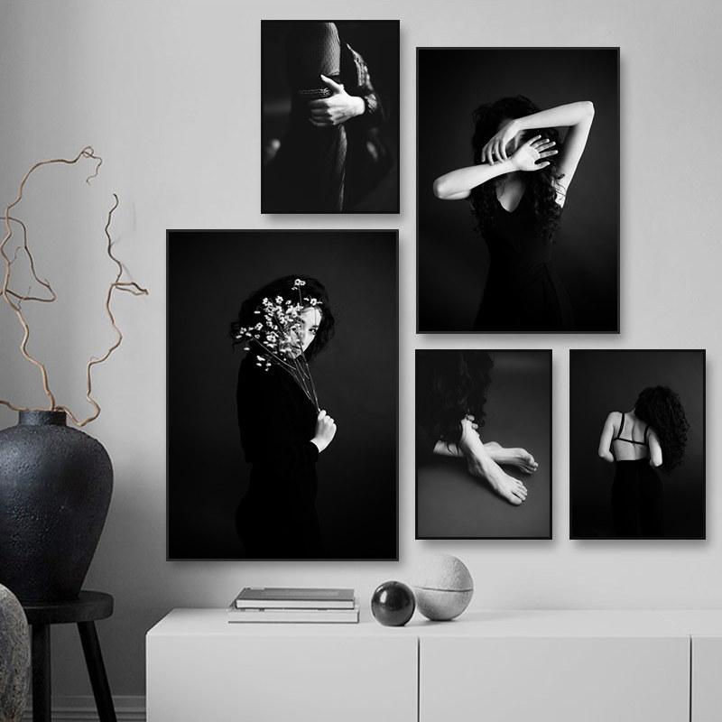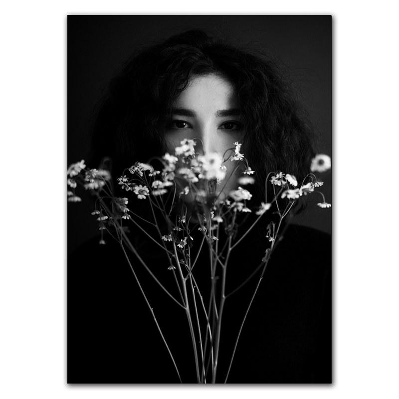 Женский портрет, букет ромашек, черно-белый художественный принт для девушки, постер, женская задняя картина, сушеный цветок, ветка, настенный декор HD0116