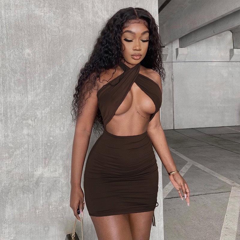 Женская сексуальная короткая юбка с открытой спиной, модное женское короткое платье с висячим вырезом