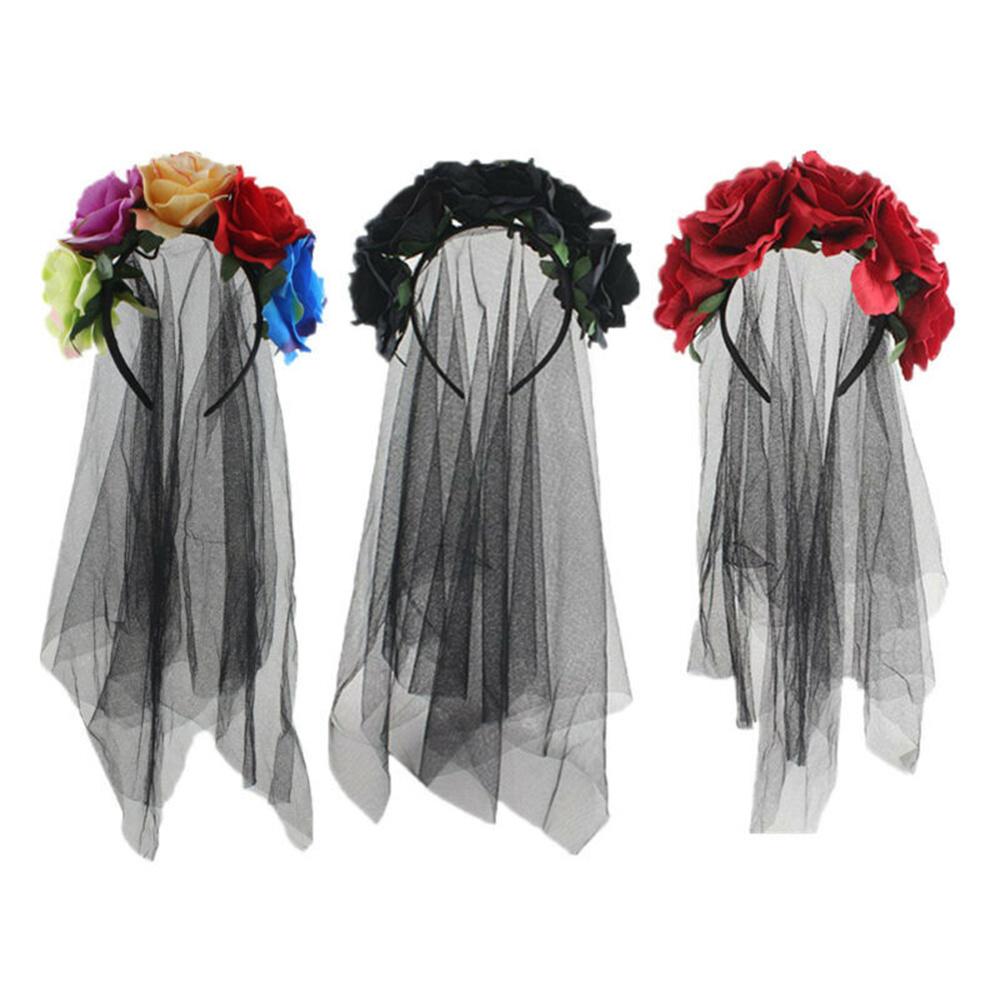 1 упаковка, повязка на голову для Хэллоуина, женская повязка на голову для девочек, День мертвых, тиара с цветком красной розы, повязка на голову с цветком, вечерние аксессуары для волос LXY