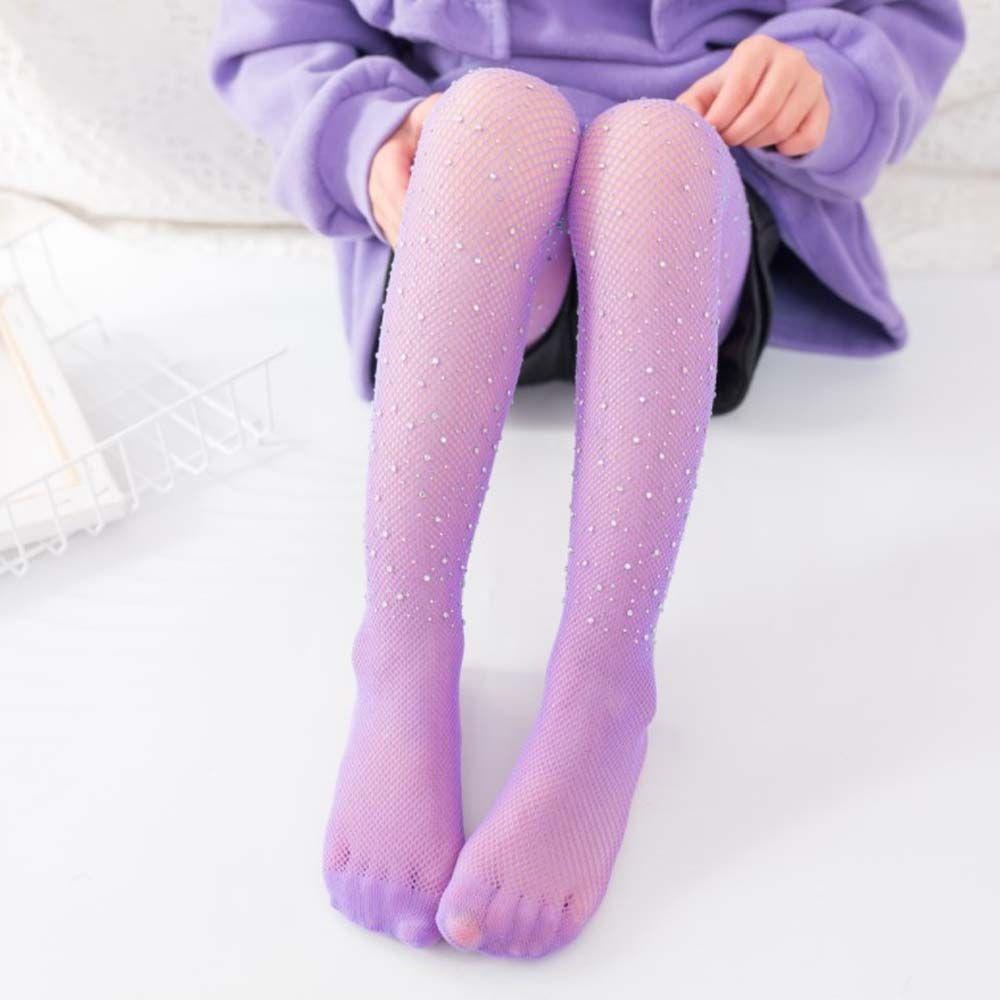Модные эластичные нейлоновые сетчатые колготки с блестками и кристаллами для девочек, ажурные колготки со стразами, детские чулки
