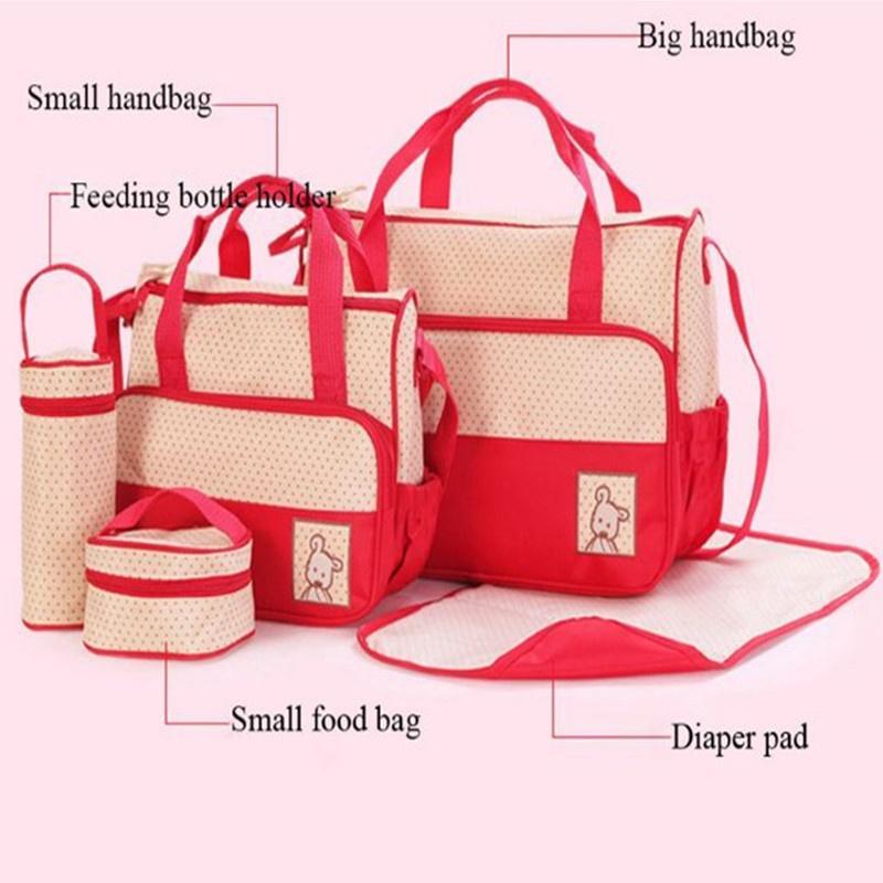 Сумка для подгузников, 5 шт., многофункциональная сумка для детских подгузников в горошек, сумка для мамы, подушка для подгузников, держатель для бутылочки для кормления, сумка