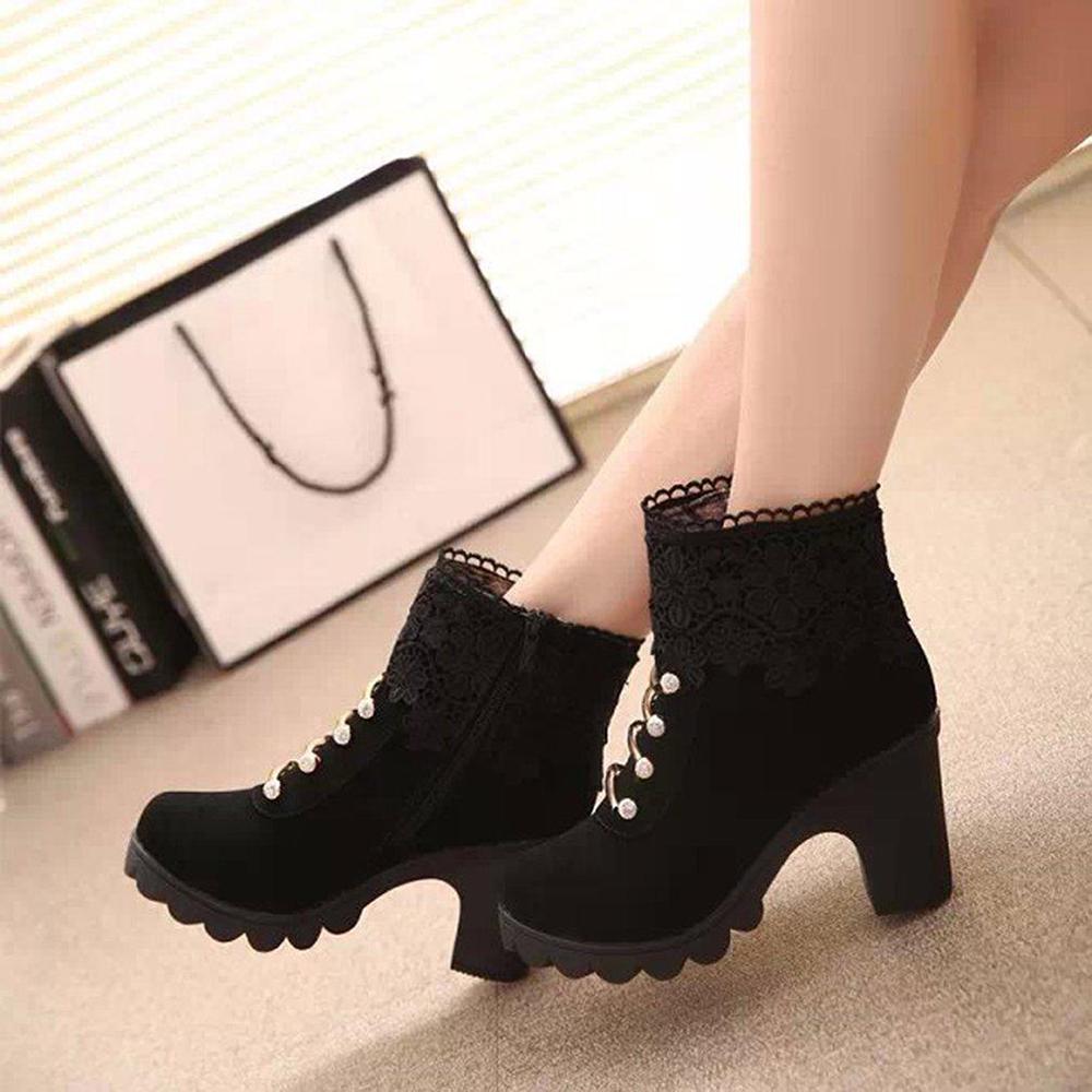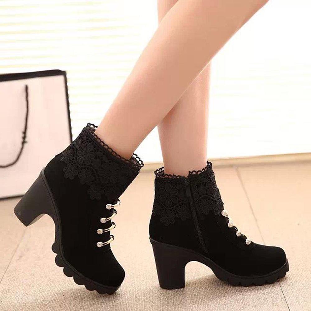 Осенне-зимние женские ботильоны из искусственной кожи с круглым носком, сексуальные кружевные туфли на высоком каблуке